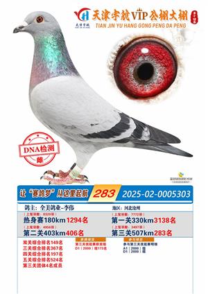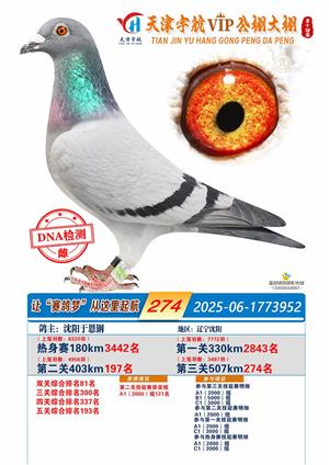 天津宇航VIP大棚2025年决赛获奖鸽照片