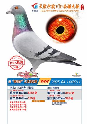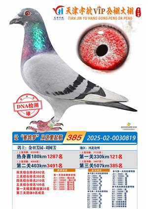天津宇航VIP大棚2025年决赛获奖鸽照片