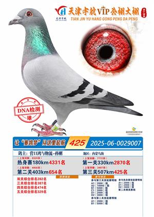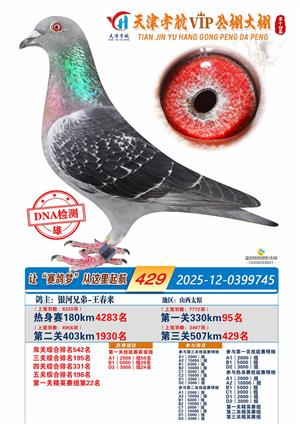 天津宇航VIP大棚2025年决赛获奖鸽照片
