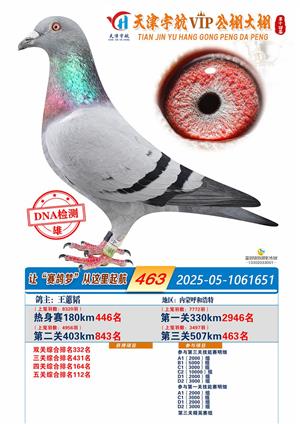 天津宇航VIP大棚2025年决赛获奖鸽照片