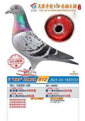 天津宇航VIP大棚2025年决赛获奖鸽照片