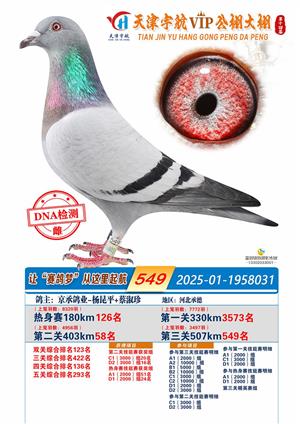 天津宇航VIP大棚2025年决赛获奖鸽照片