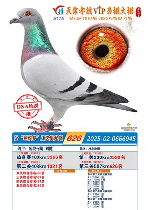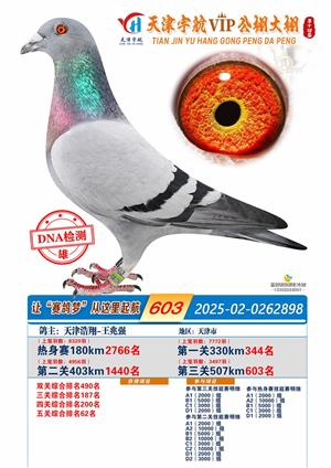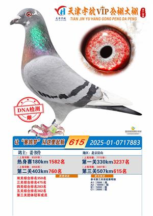 天津宇航VIP大棚2025年决赛获奖鸽照片