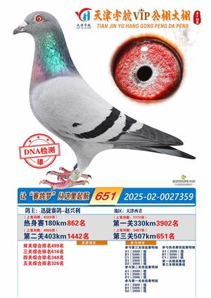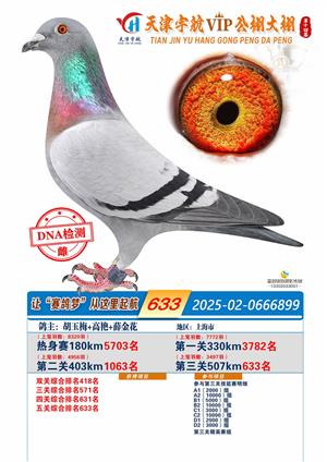 天津宇航VIP大棚2025年决赛获奖鸽照片