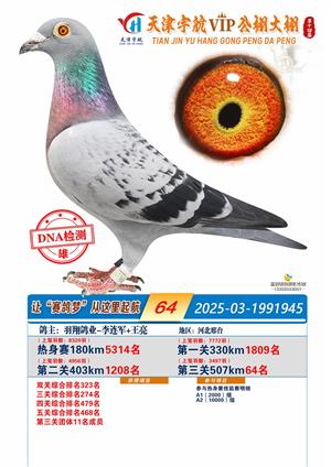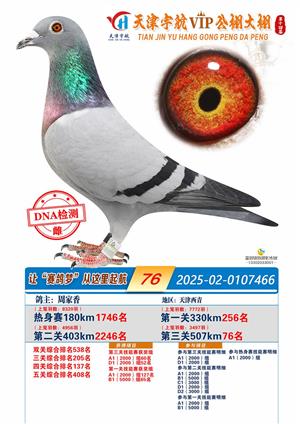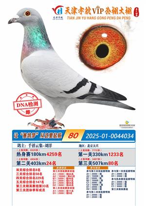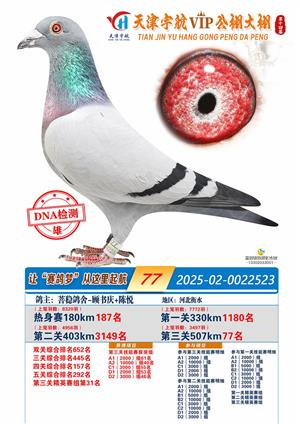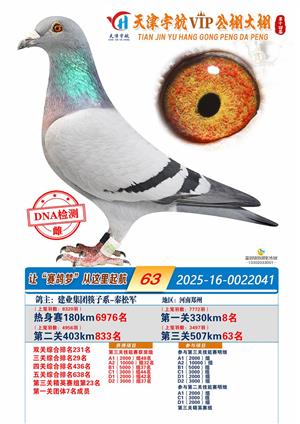 天津宇航VIP大棚2025年决赛获奖鸽照片
