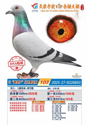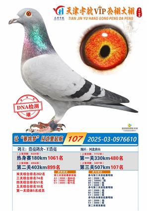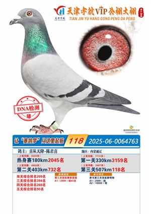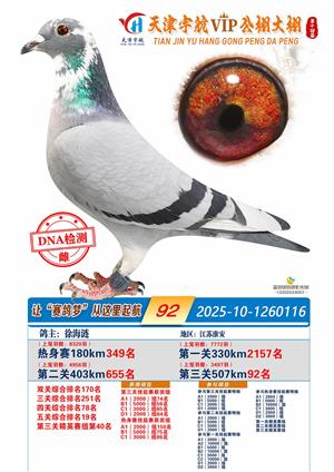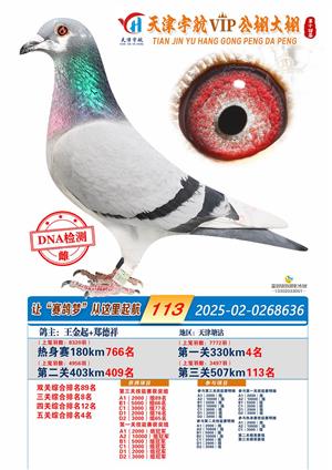 天津宇航VIP大棚2025年决赛获奖鸽照片