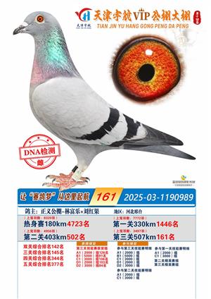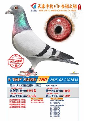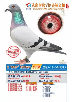 天津宇航VIP大棚2025年决赛获奖鸽照片