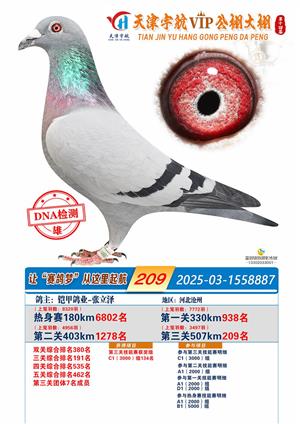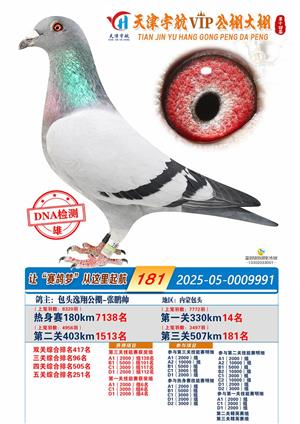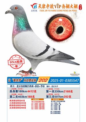 天津宇航VIP大棚2025年决赛获奖鸽照片