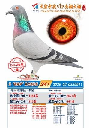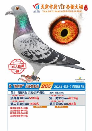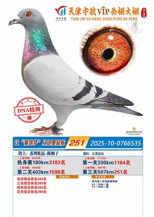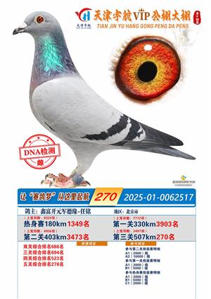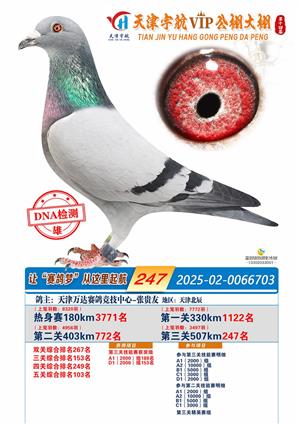 天津宇航VIP大棚2025年决赛获奖鸽照片