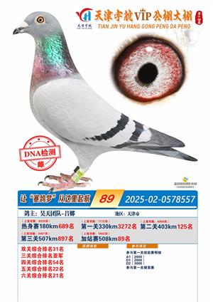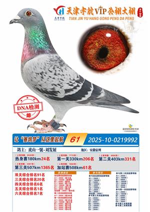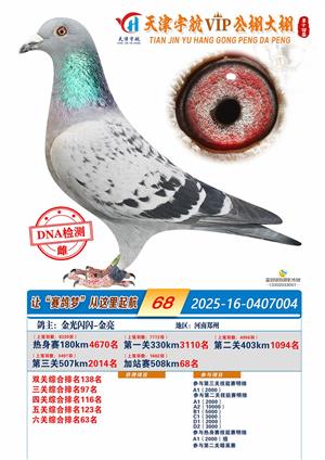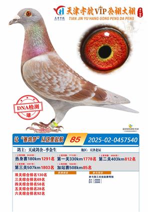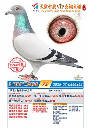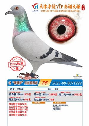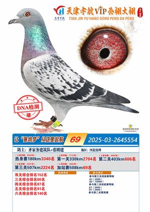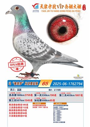 天津宇航VIP大棚2025年加站赛获奖鸽照片