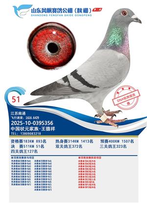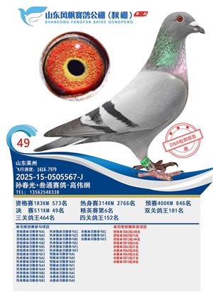 山东风帆赛鸽公棚(秋棚)2025年第二届获奖鸽照片
