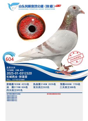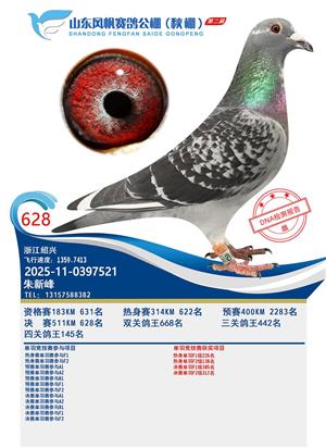山东风帆赛鸽公棚(秋棚)2025年第二届获奖鸽照片