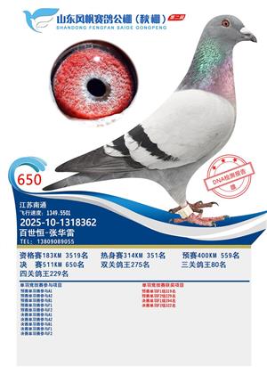 山东风帆赛鸽公棚(秋棚)2025年第二届获奖鸽照片