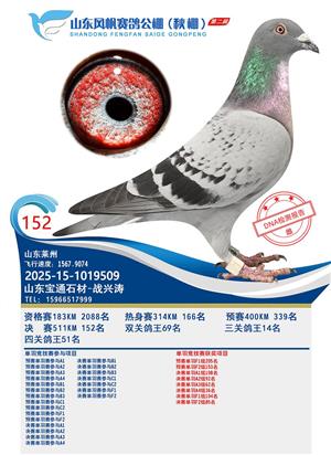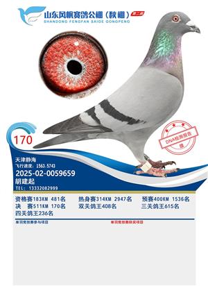 山东风帆赛鸽公棚(秋棚)2025年第二届获奖鸽照片