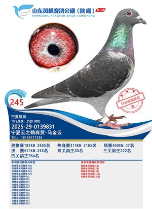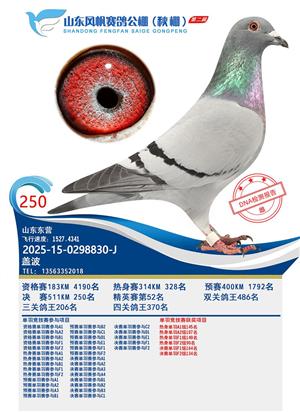 山东风帆赛鸽公棚(秋棚)2025年第二届获奖鸽照片