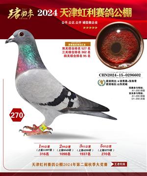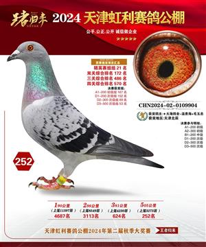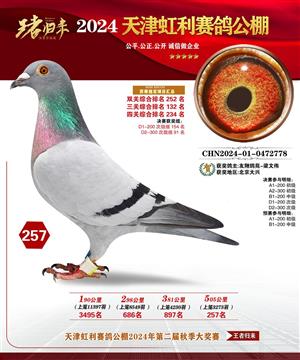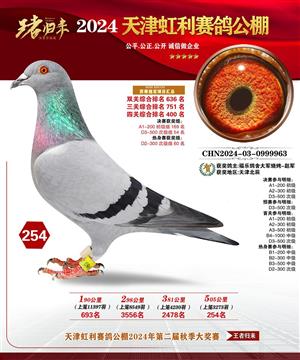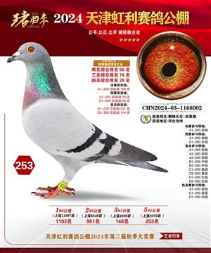 天津虹利赛鸽公棚决赛1-800名获奖鸽照片
