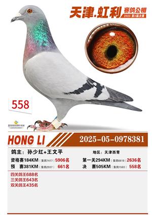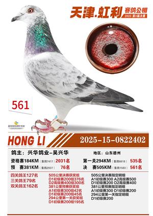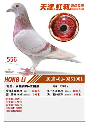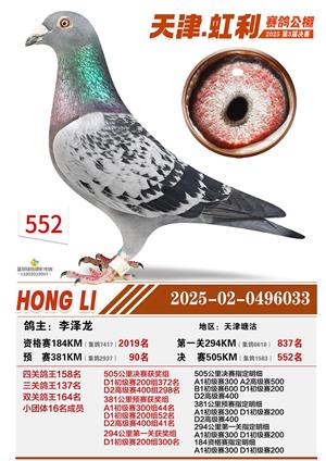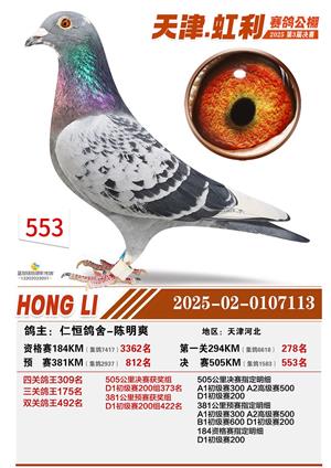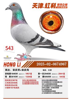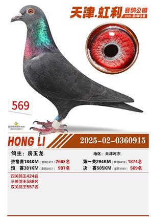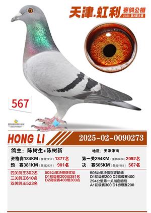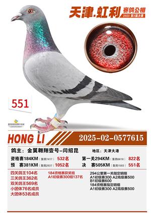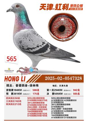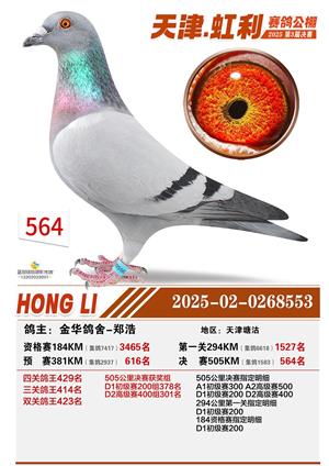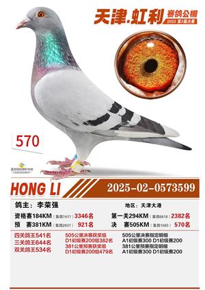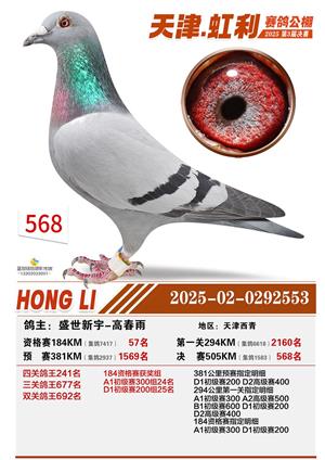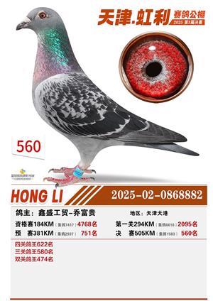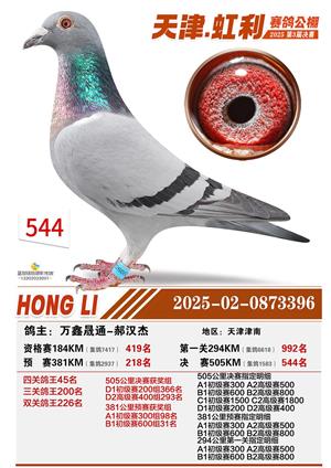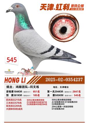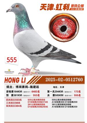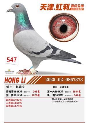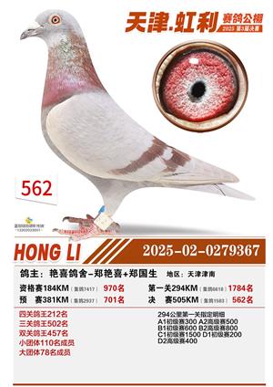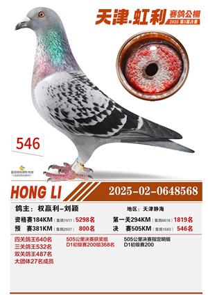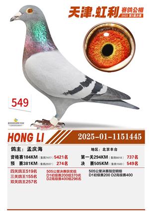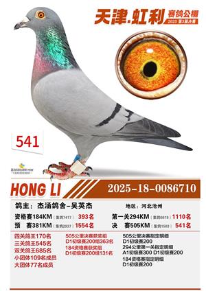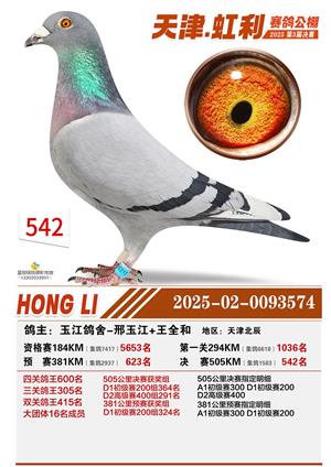 天津虹利公棚决赛1-700名获奖鸽照片