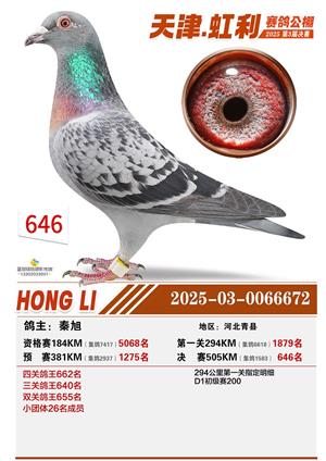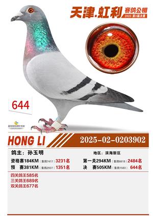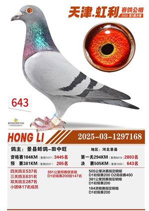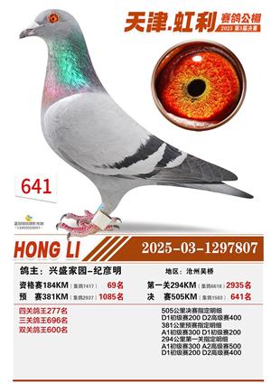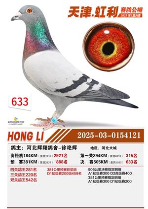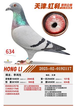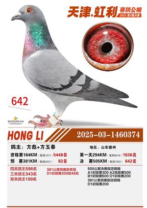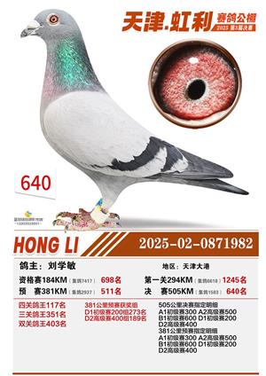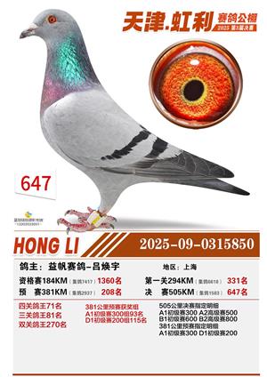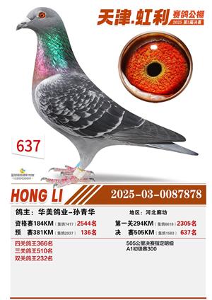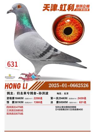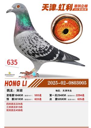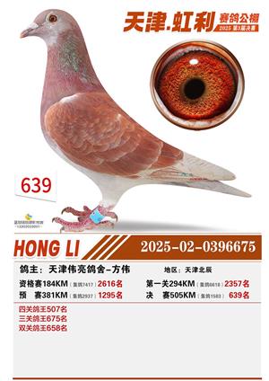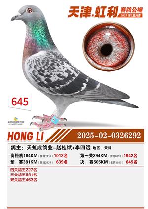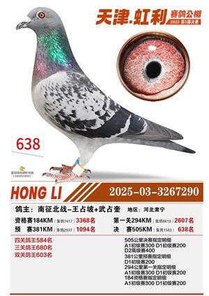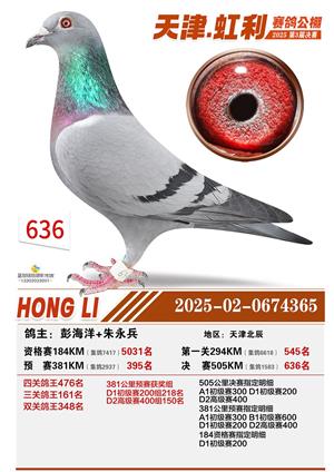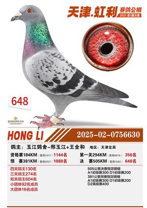 天津虹利公棚决赛1-700名获奖鸽照片