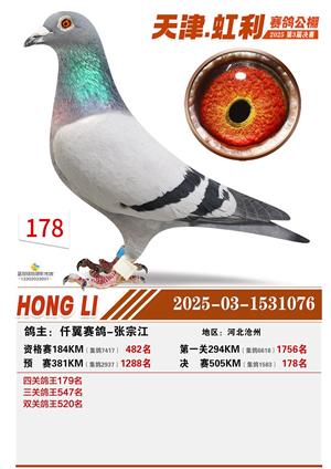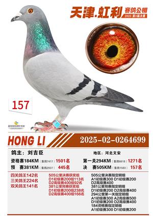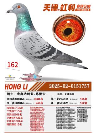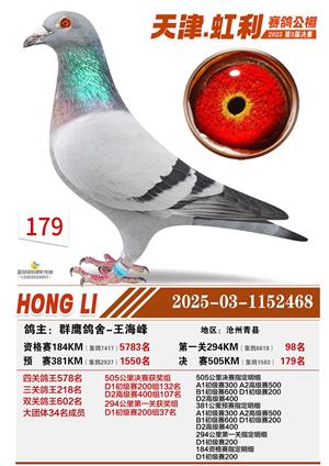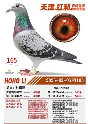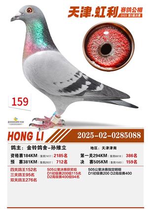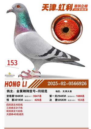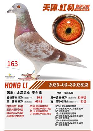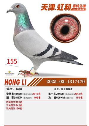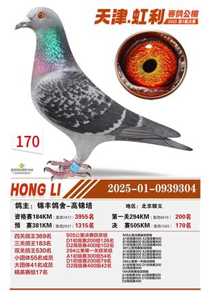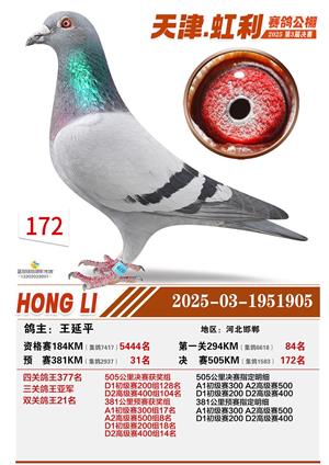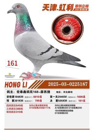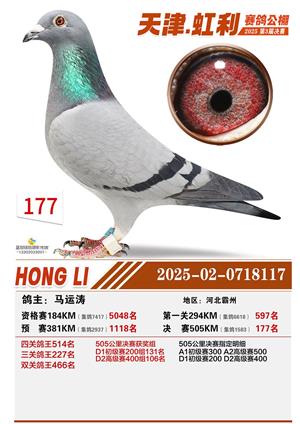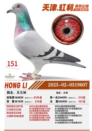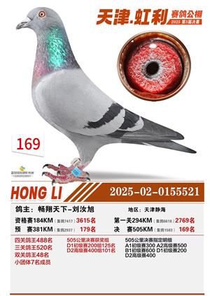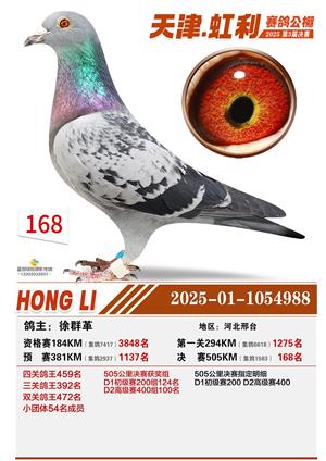 天津虹利公棚决赛1-700名获奖鸽照片