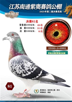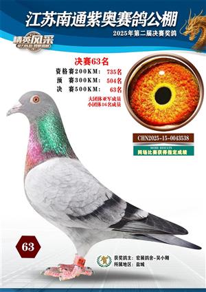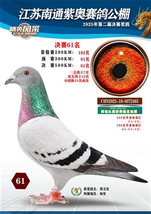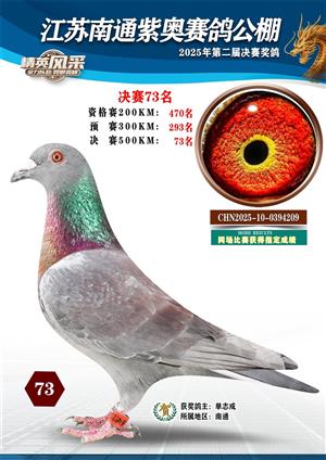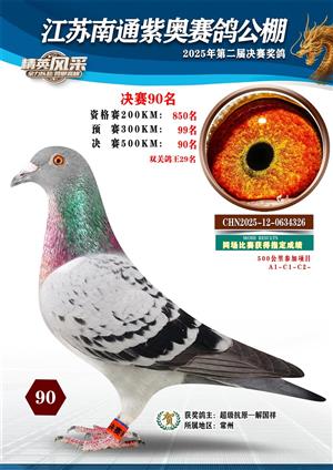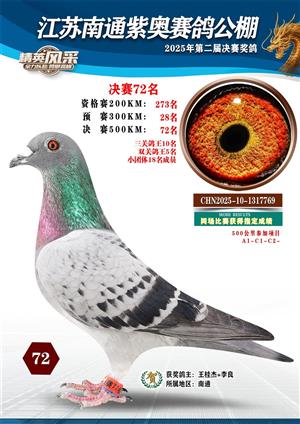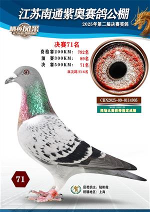 南通紫奥赛鸽公棚2025年获奖鸽