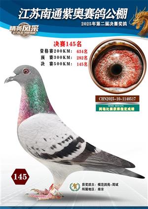 南通紫奥赛鸽公棚2025年获奖鸽