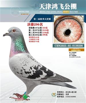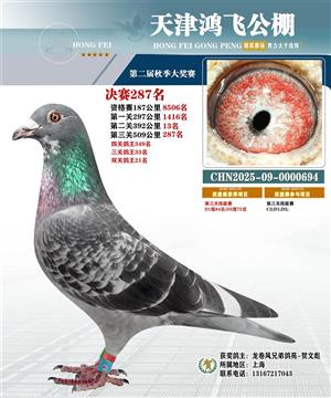 天津鸿飞公棚决赛获奖鸽照片