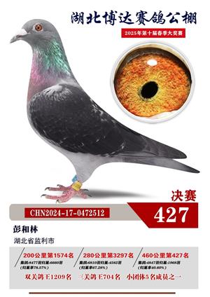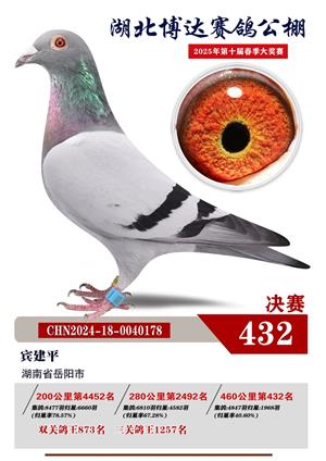 湖北博达春季赛鸽公棚2025年决赛1-800名获奖鸽照片赏析