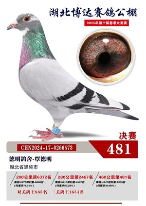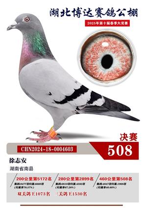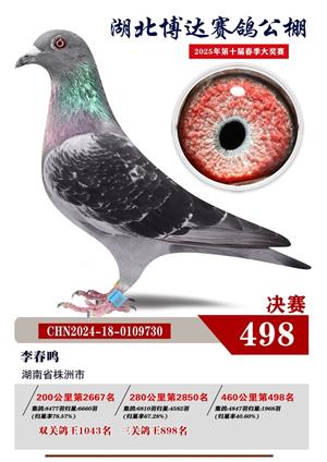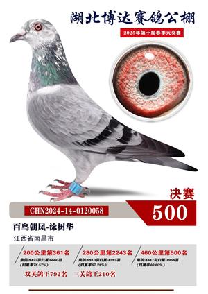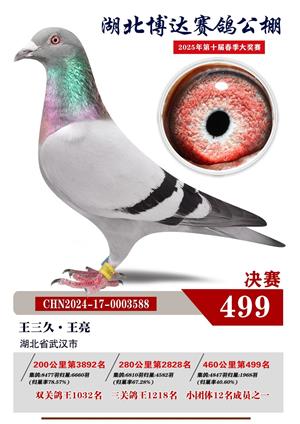 湖北博达春季赛鸽公棚2025年决赛1-800名获奖鸽照片赏析
