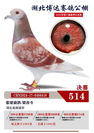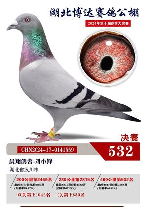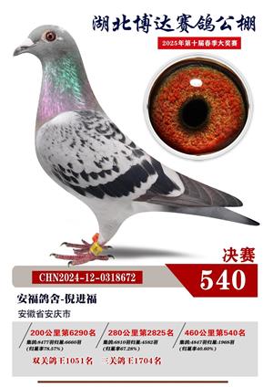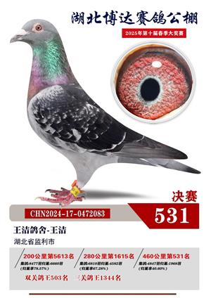 湖北博达春季赛鸽公棚2025年决赛1-800名获奖鸽照片赏析