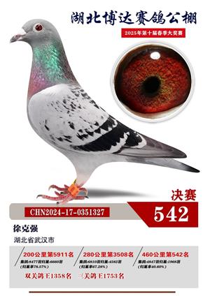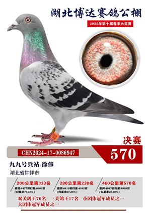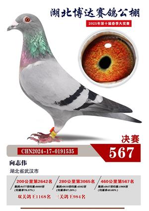湖北博达春季赛鸽公棚2025年决赛1-800名获奖鸽照片赏析