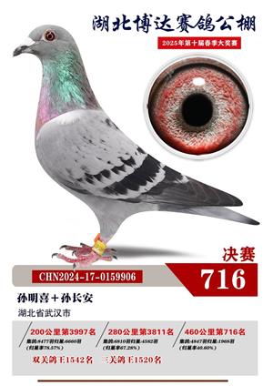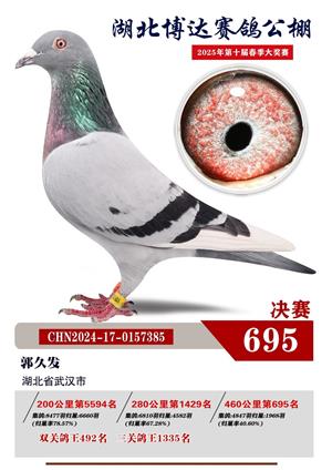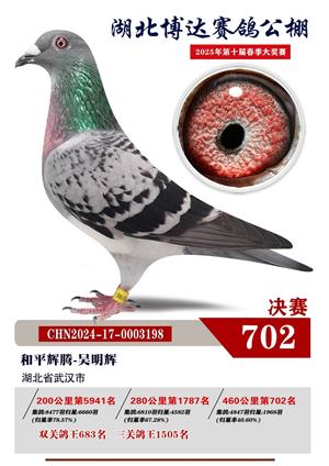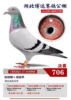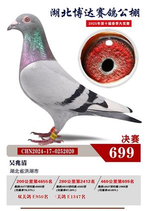 湖北博达春季赛鸽公棚2025年决赛1-800名获奖鸽照片赏析