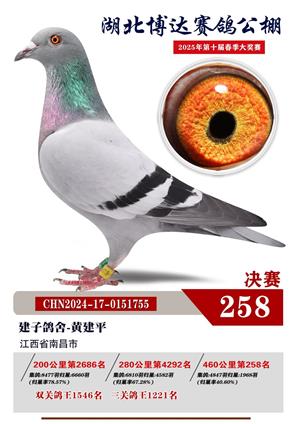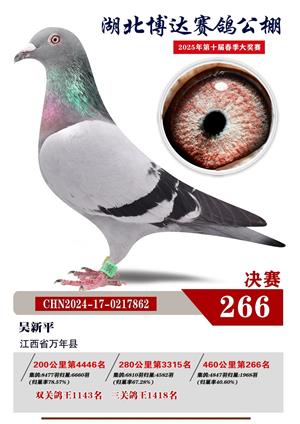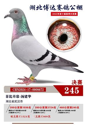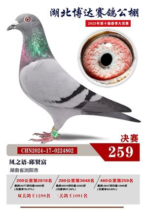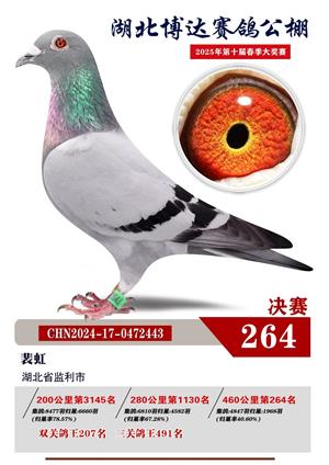 湖北博达春季赛鸽公棚2025年决赛1-800名获奖鸽照片赏析