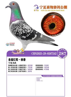 宁夏森翔赛鸽公棚2025年决赛获奖鸽照片