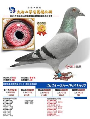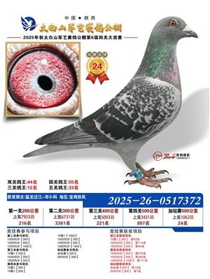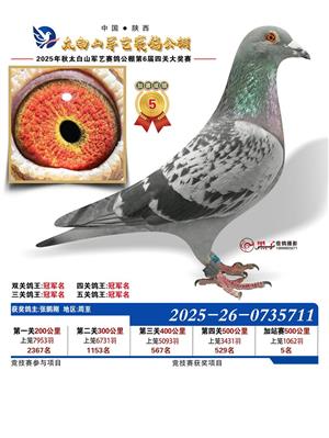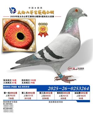 陕西太白山军艺公棚2025秋加站赛获奖鸽赏析