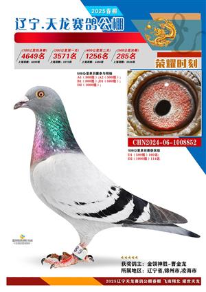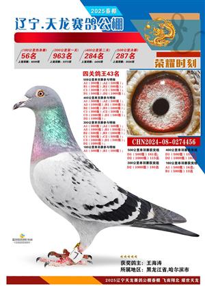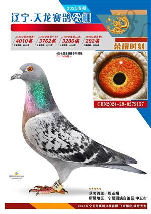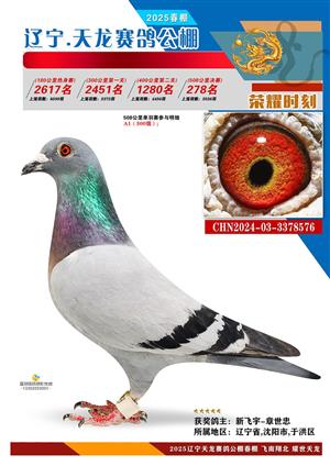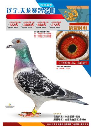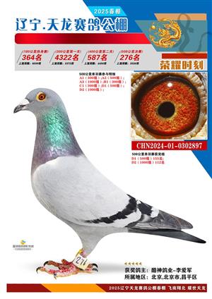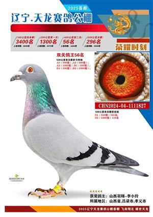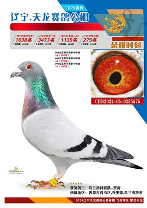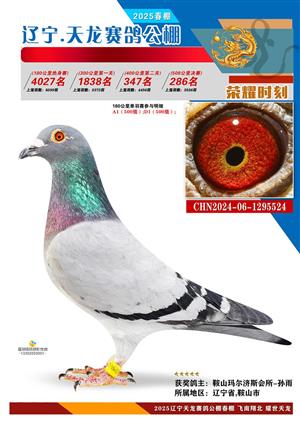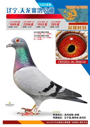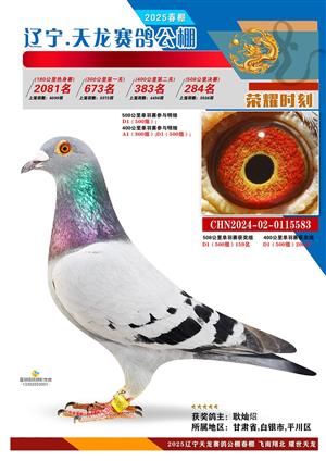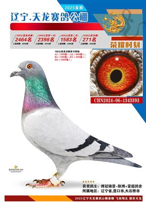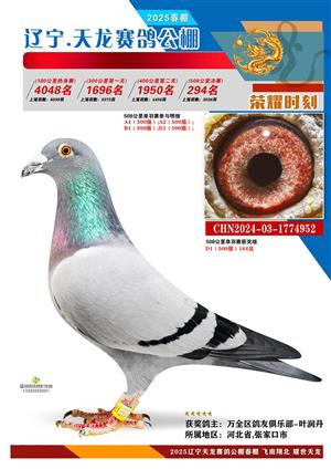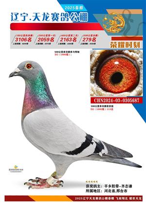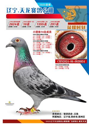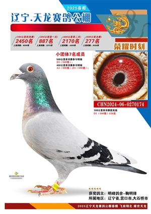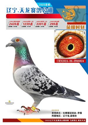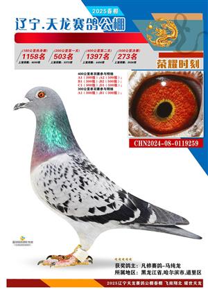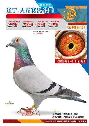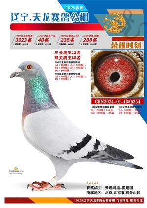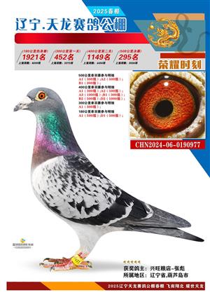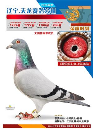 辽宁天龙春棚2025年决赛1-900名获奖鸽相片
