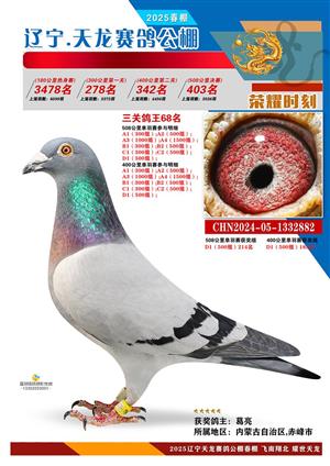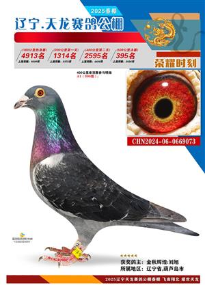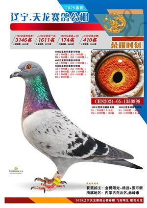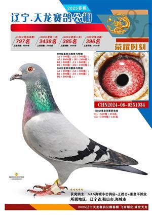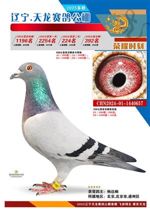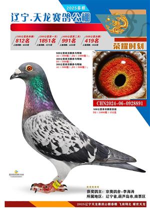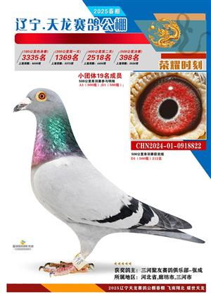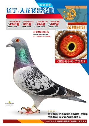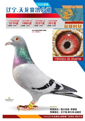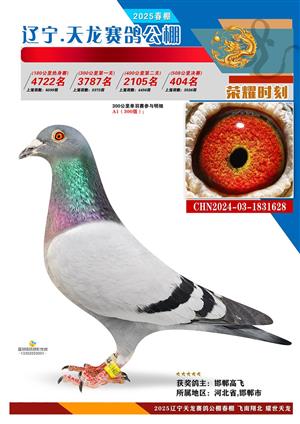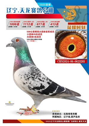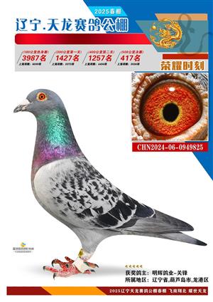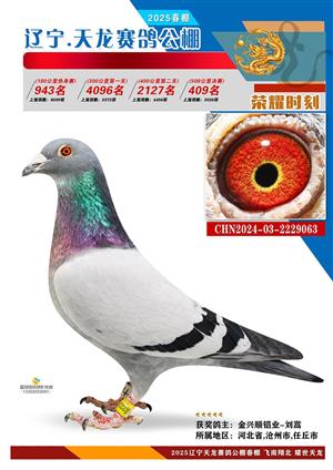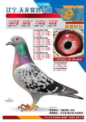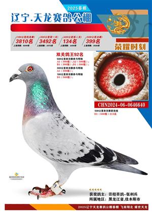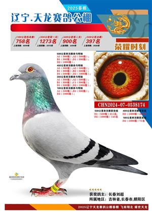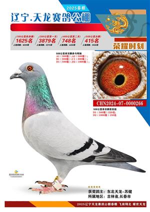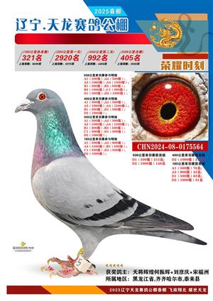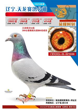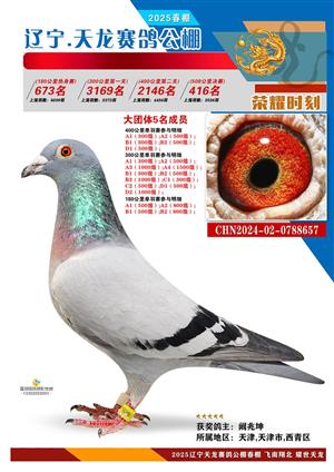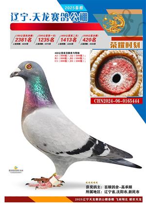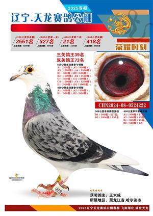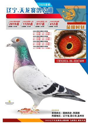 辽宁天龙春棚2025年决赛1-900名获奖鸽相片