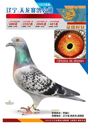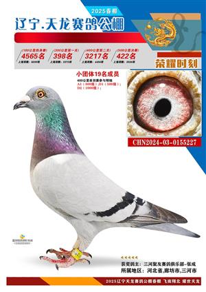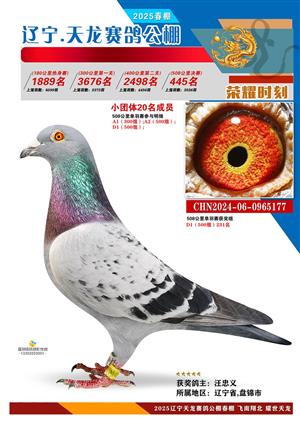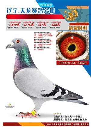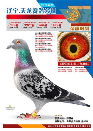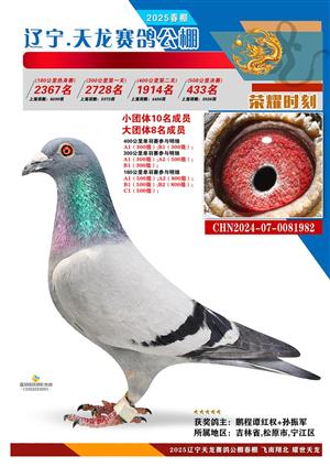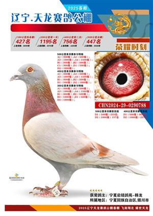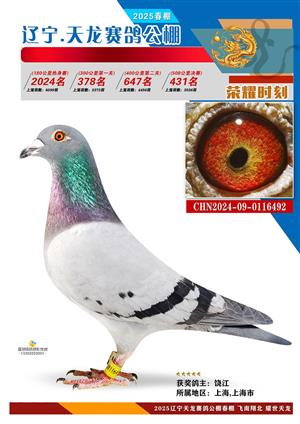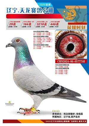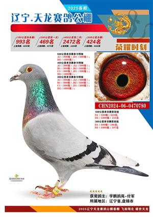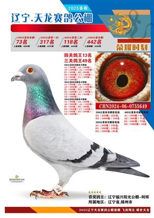 辽宁天龙春棚2025年决赛1-900名获奖鸽相片