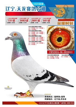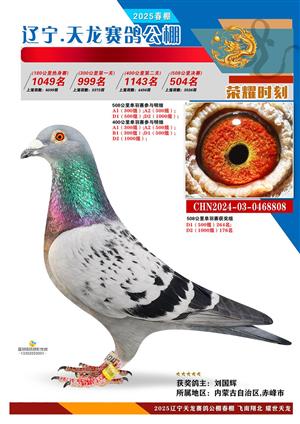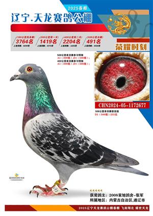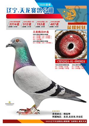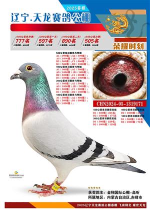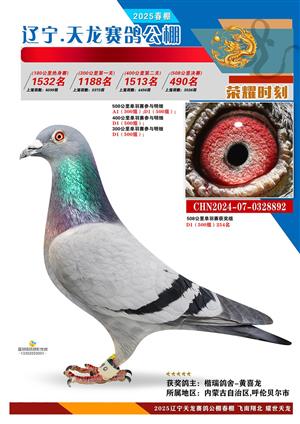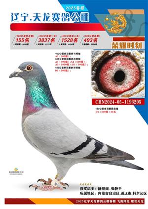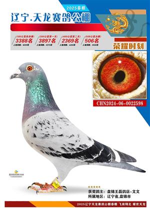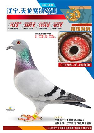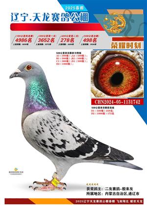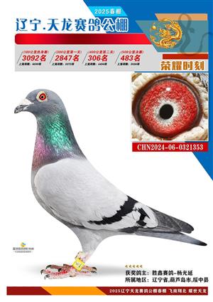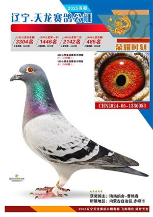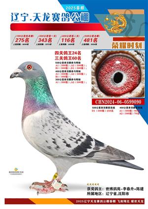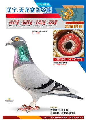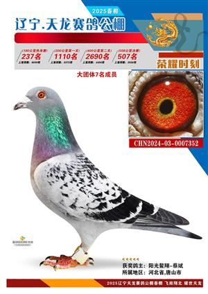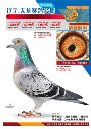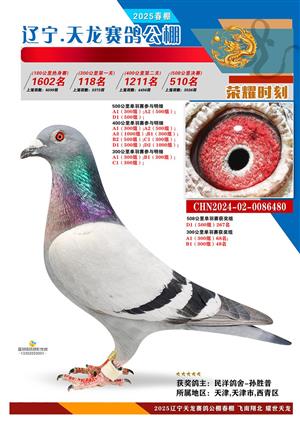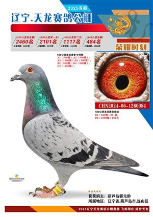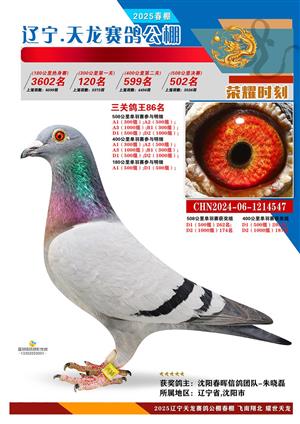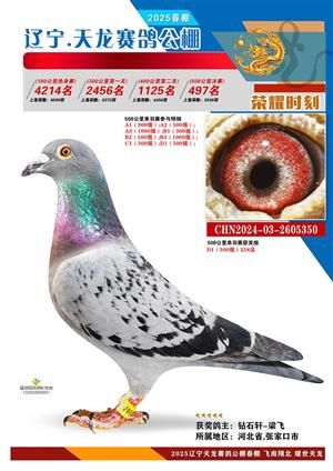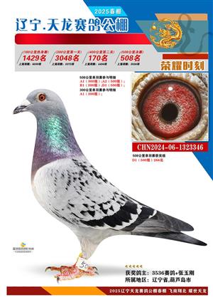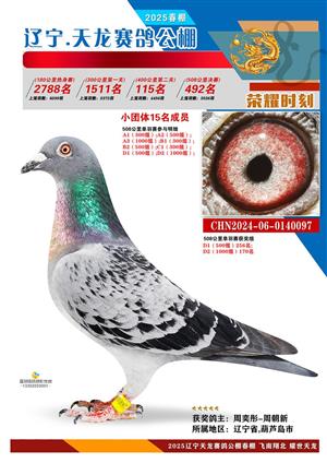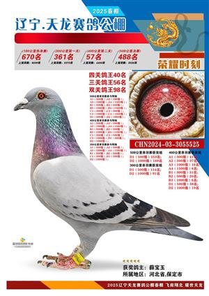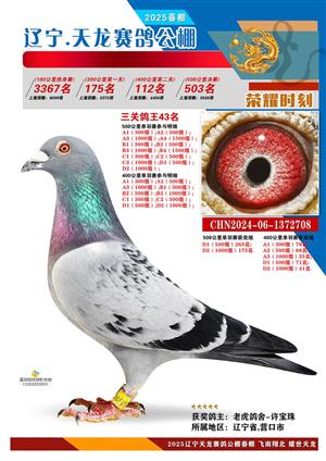 辽宁天龙春棚2025年决赛1-900名获奖鸽相片