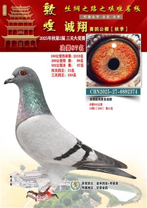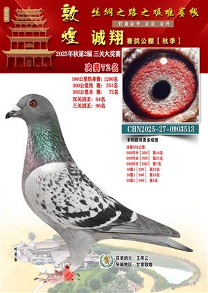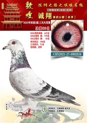 甘肃敦煌诚翔公棚2025年秋季获奖鸽赏析