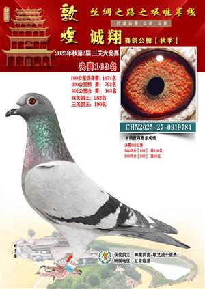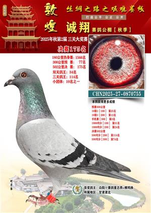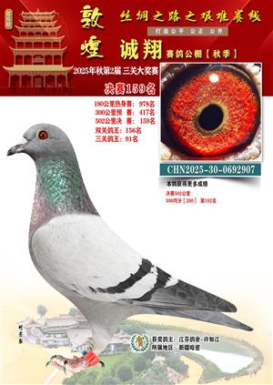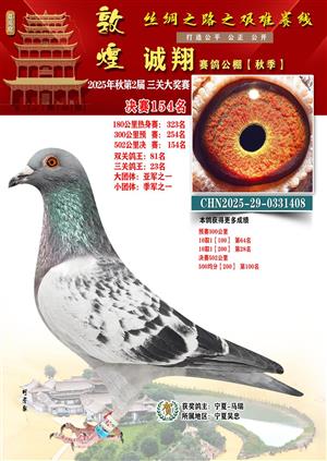 甘肃敦煌诚翔公棚2025年秋季获奖鸽赏析