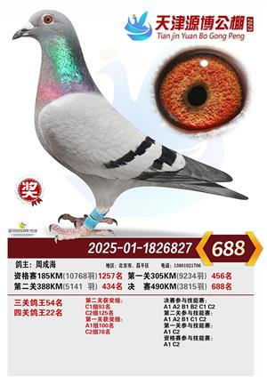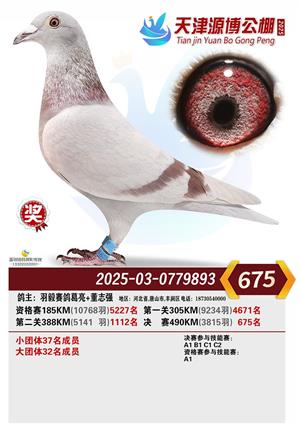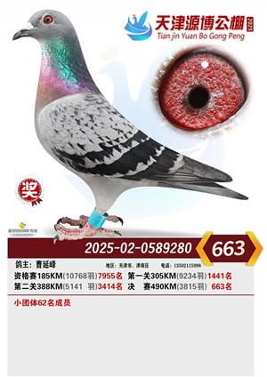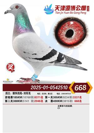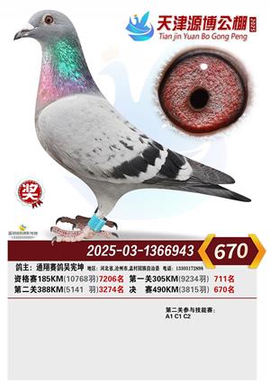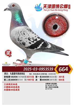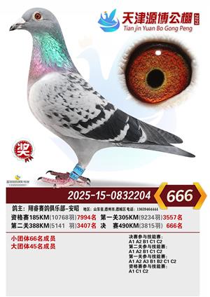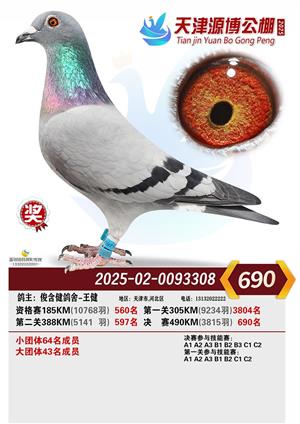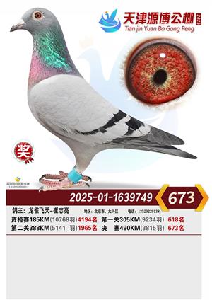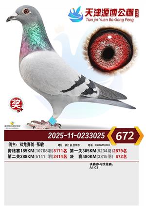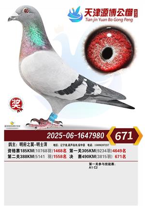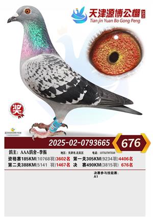 天津源博公棚2025年决赛前700名获奖鸽照片