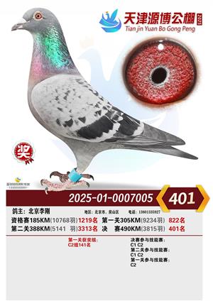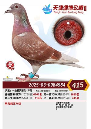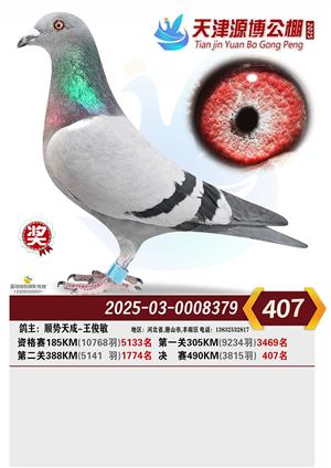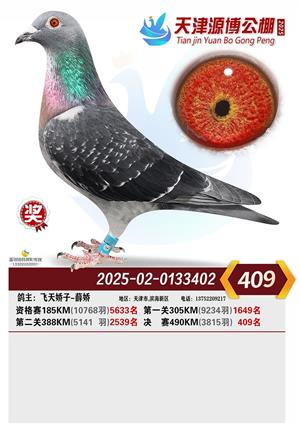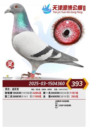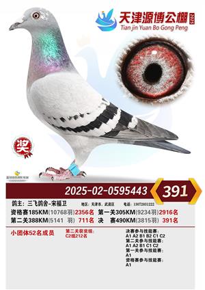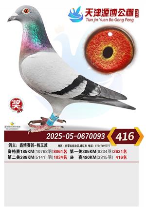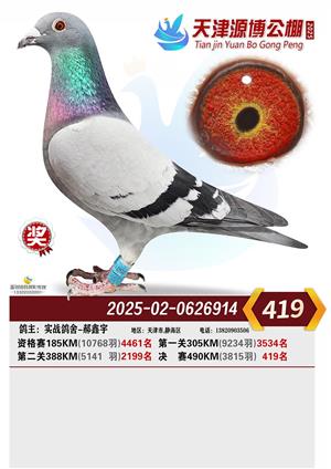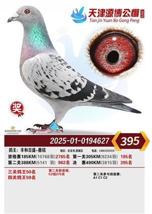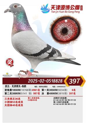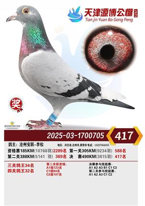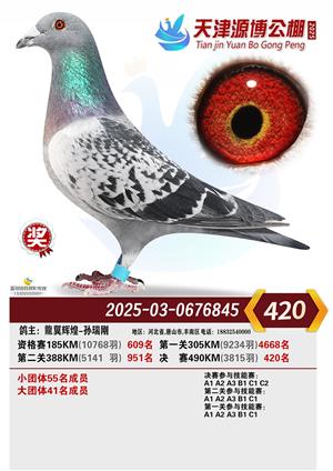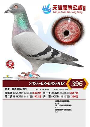 天津源博公棚2025年决赛前700名获奖鸽照片