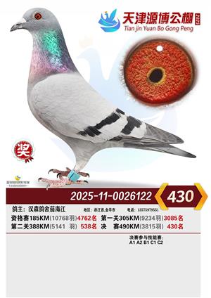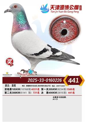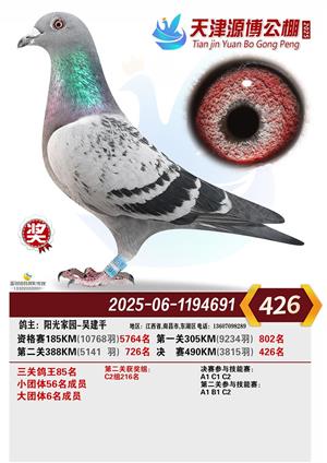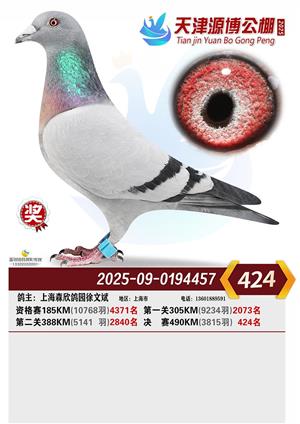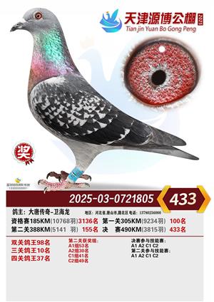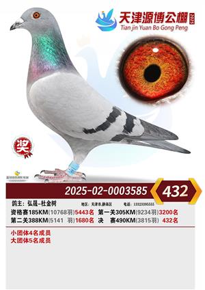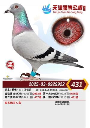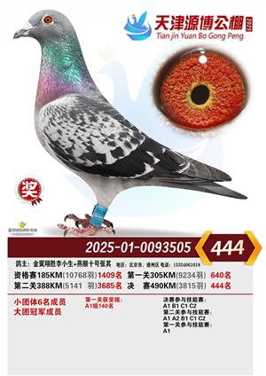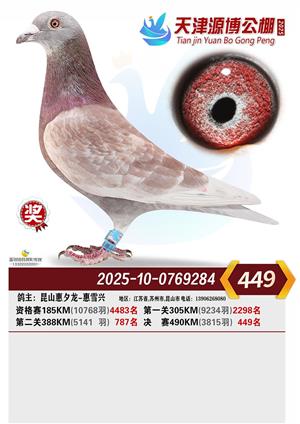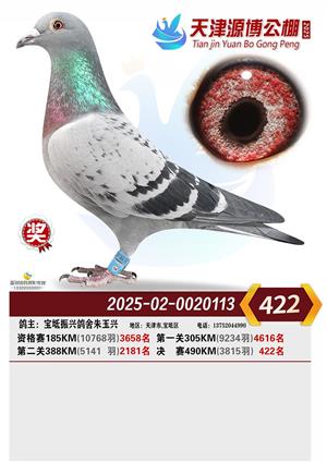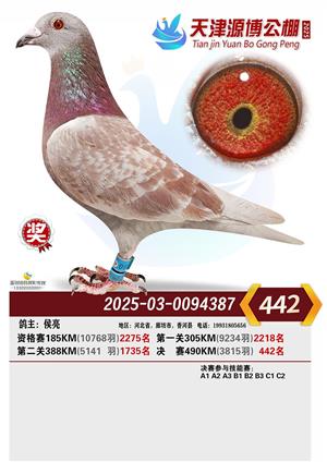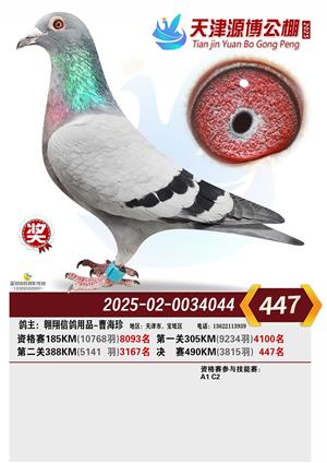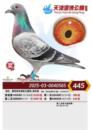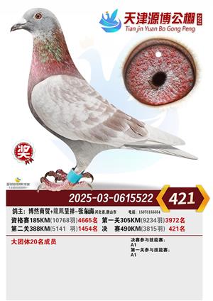 天津源博公棚2025年决赛前700名获奖鸽照片