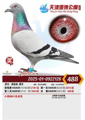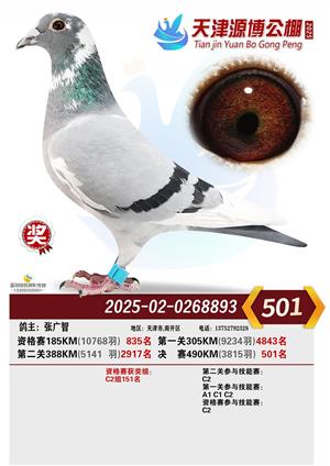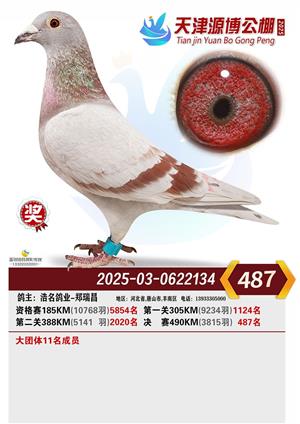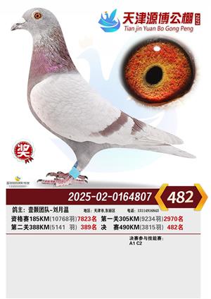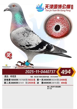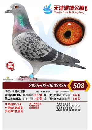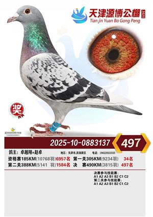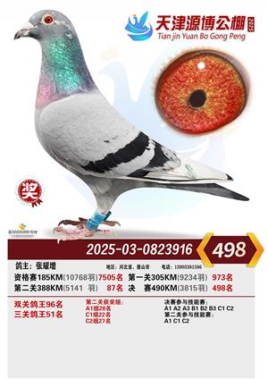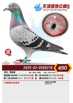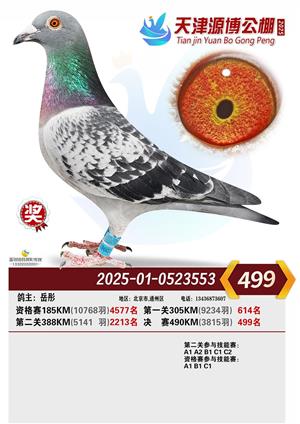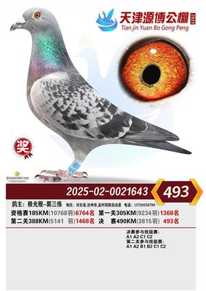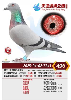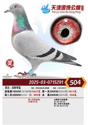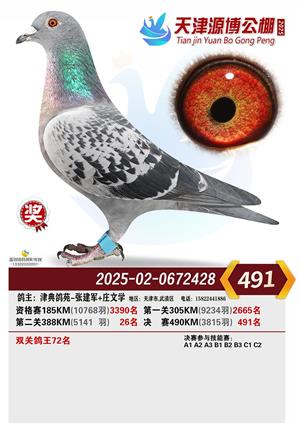 天津源博公棚2025年决赛前700名获奖鸽照片