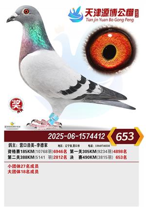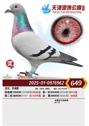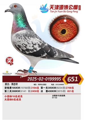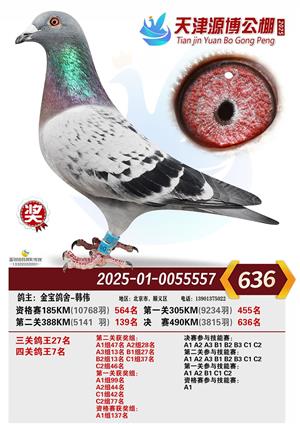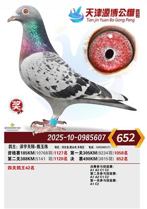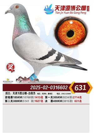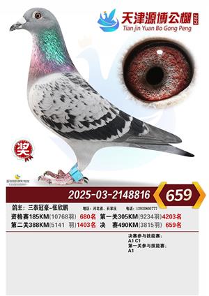 天津源博公棚2025年决赛前700名获奖鸽照片