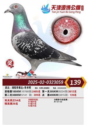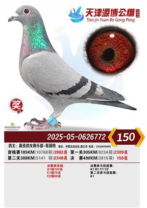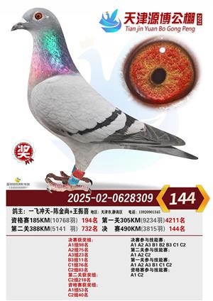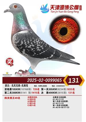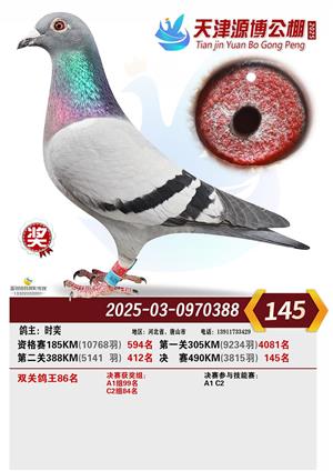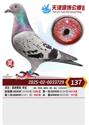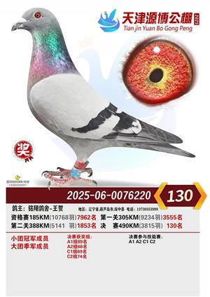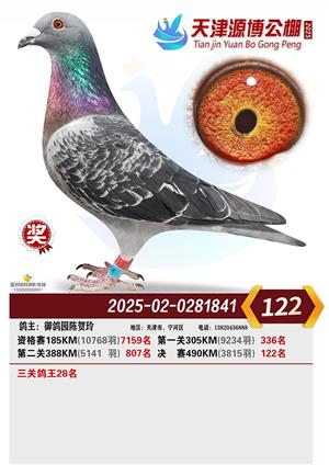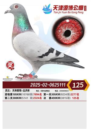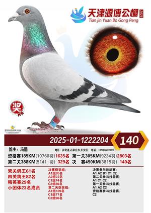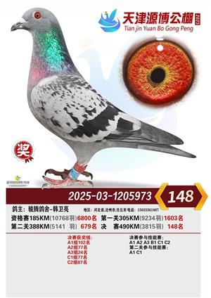 天津源博公棚2025年决赛前700名获奖鸽照片