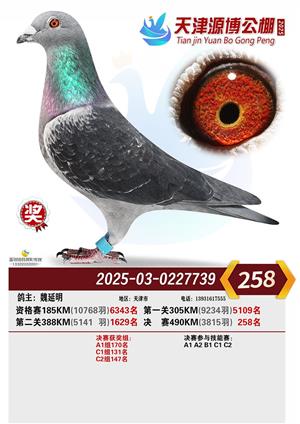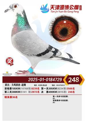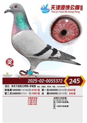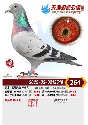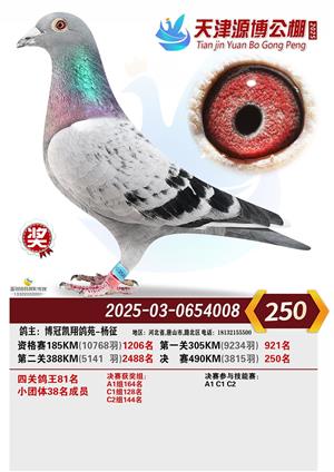 天津源博公棚2025年决赛前700名获奖鸽照片