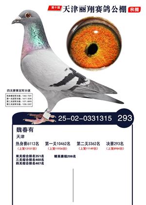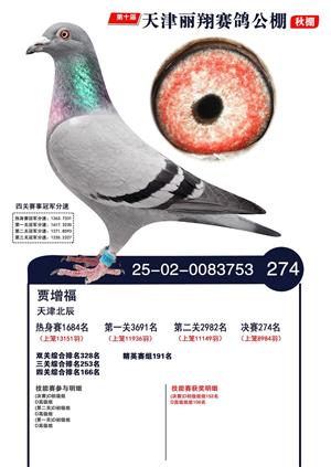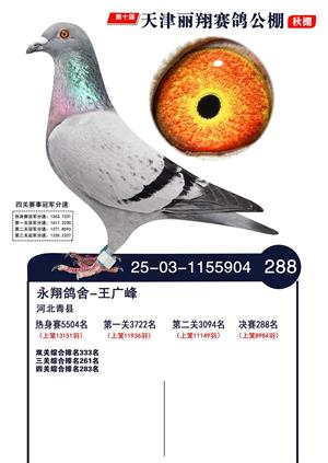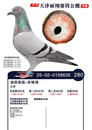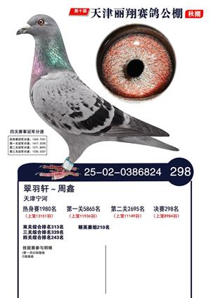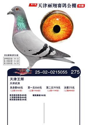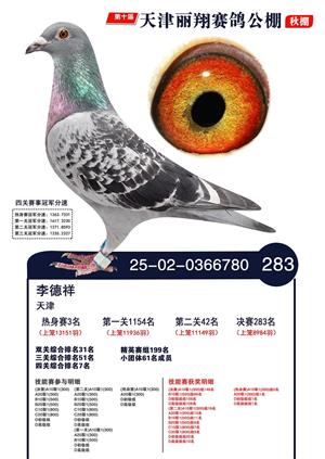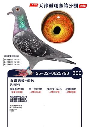 天津丽翔公棚2025年决赛前700名获奖鸽照片