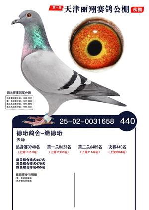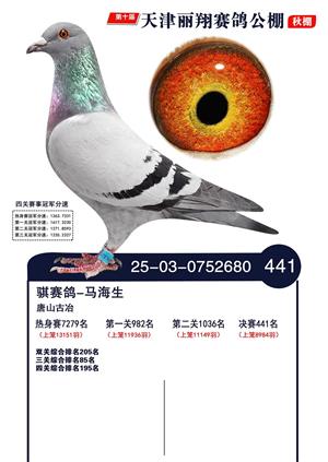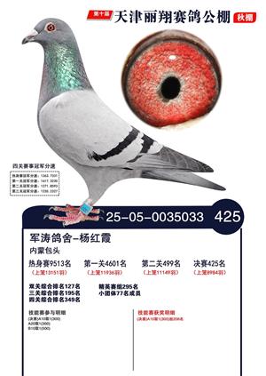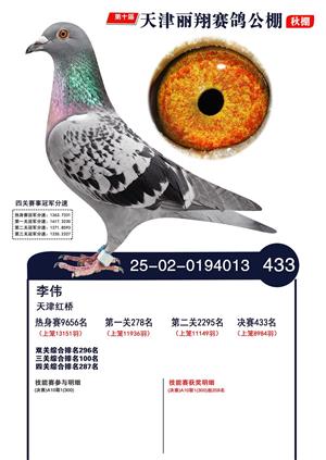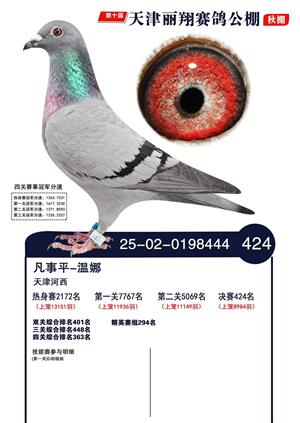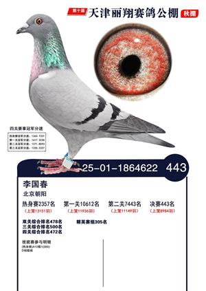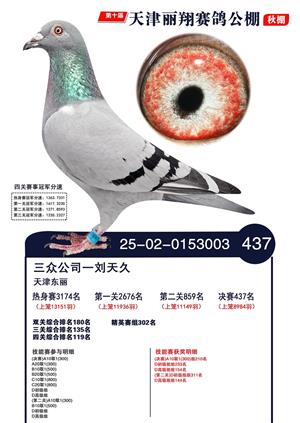 天津丽翔公棚2025年决赛前700名获奖鸽照片