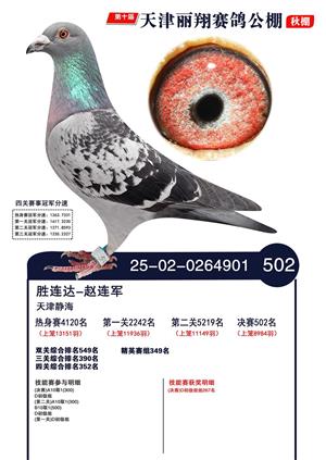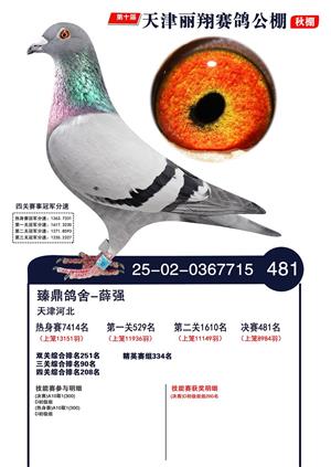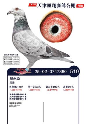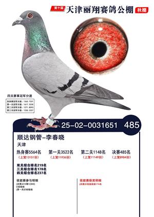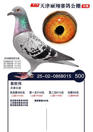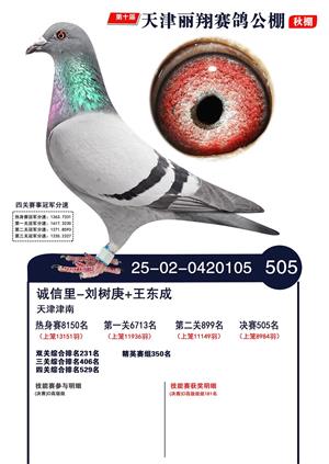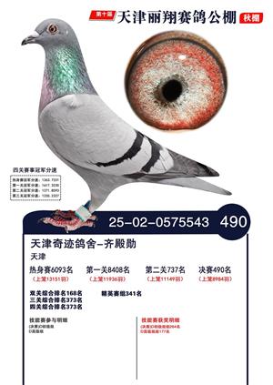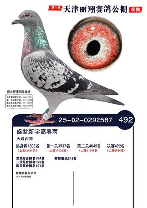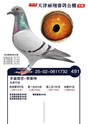 天津丽翔公棚2025年决赛前700名获奖鸽照片